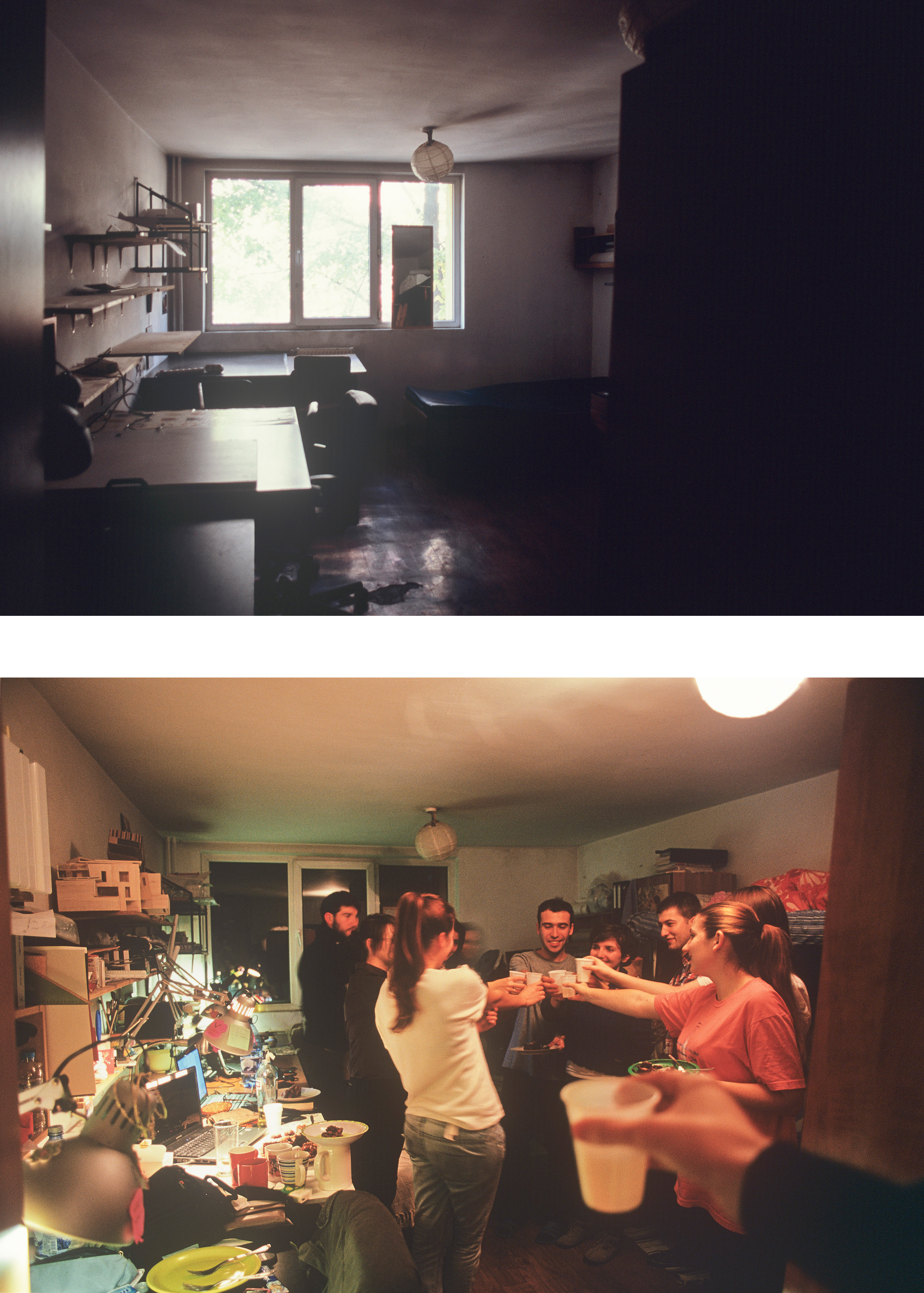 Using photography as a tool of expression, I documented in photographs the rooms in which I, and my friends and colleagues from the student hostel, lived. I chose to illustrate each room in two different moments, to present in this way the double identity of the same space. The first photograph portrays the unpopulated room during holiday, while the second is the image of the same room, but during university year, in its moment of maximum activity and population. Therefore, I tried to catch as best I could the atmosphere of these rooms in their most different period of the year. The final result is not only a collection of images depicting dorm rooms, but also one of memories which create a more complete picture of student life.